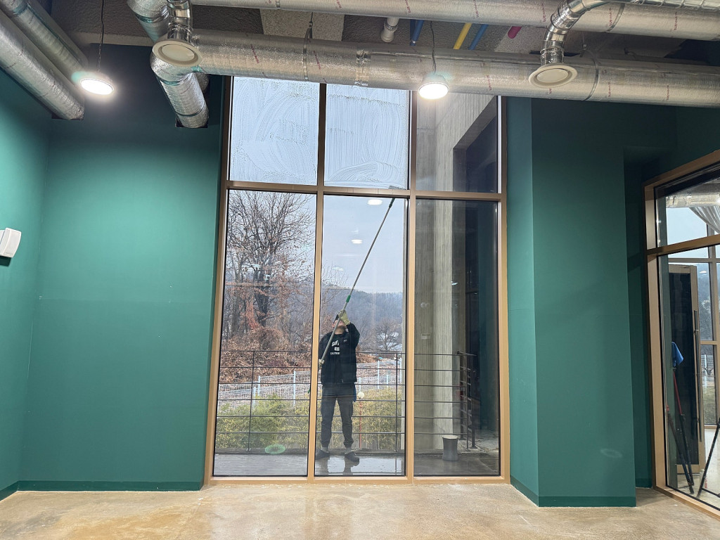 수도권 유리창 청소 시공 능력 1위 업체 퍼스트클린은현장 구조와 높이에 맞춰 전용 장비와 안전 장치를 사용해상단 유리까지 꼼꼼하게 작업을 진행했습니다.묵은 오염을 제거한 뒤 시야가 확 트이는 깨끗한 상태로 마무리했습니다.